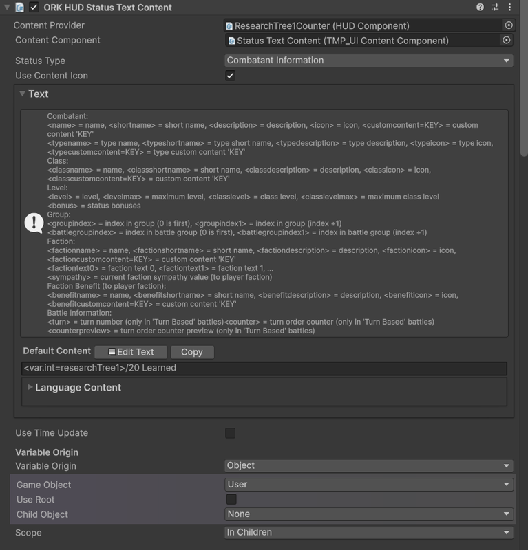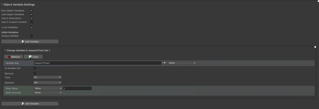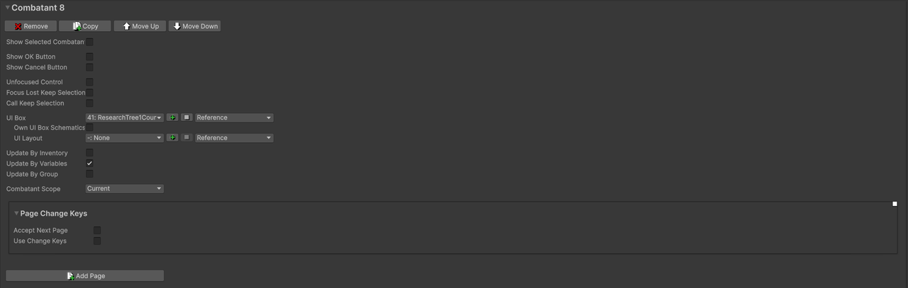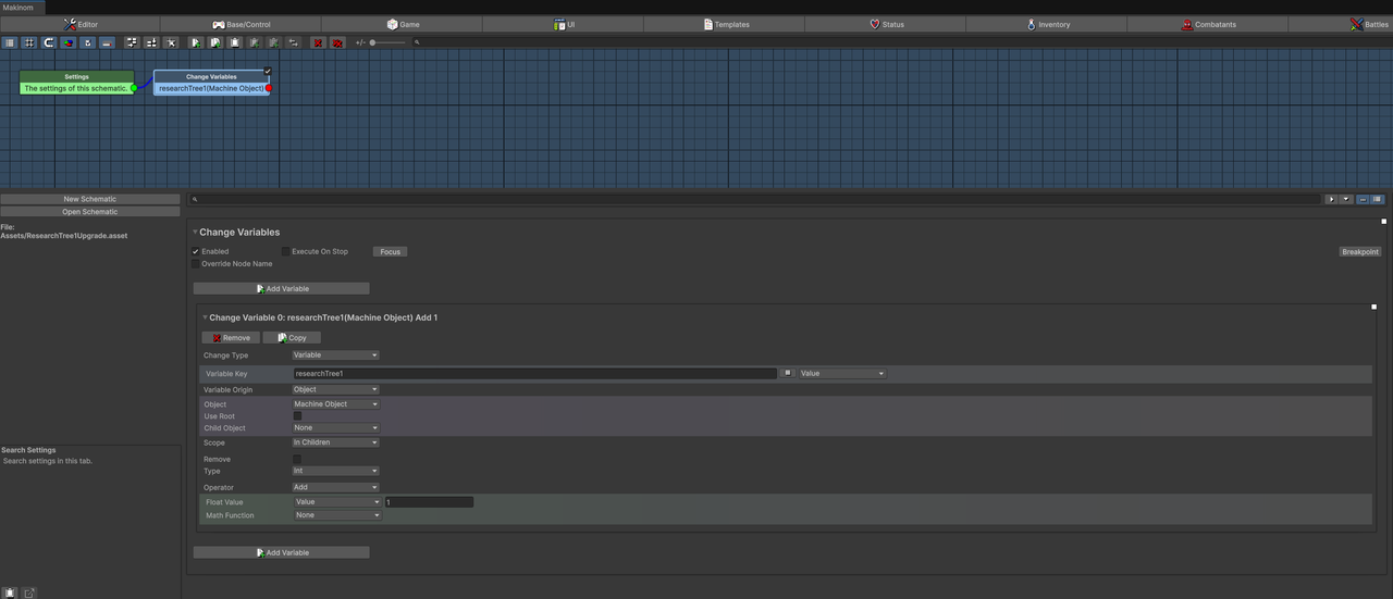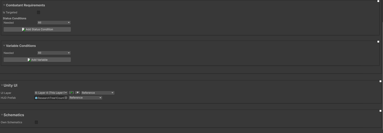 Basically, the plan is to just define multiple int object variables on each combatant and use a schematic in the "Finish Schematic" slot that will increase the int object variable on the combatant when the research item has finished being researched. The issue is for whatever reason, in this current setup it only ever increases for the very first combatant. Each combatant shares the same research tree, but I didn't think you'd have to literally define individual research trees per combatant, especially since I was using them as skill trees, so the skills themselves are the same anyway.