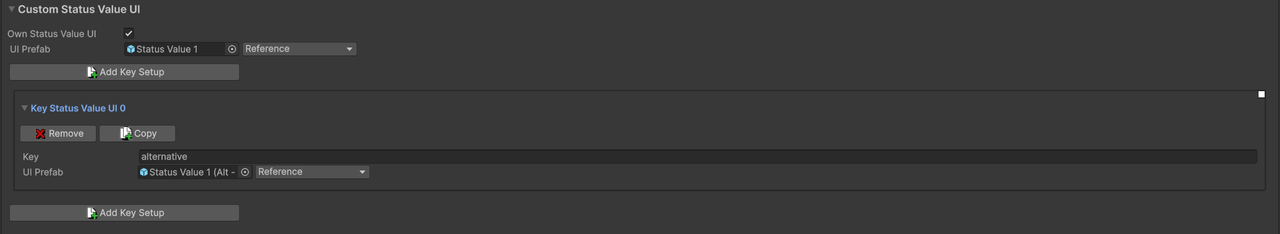 In the "Status Values" section, in "Custom Status Value UI", I've defined a new key and assigned the UI prefab Status Value bar that is set to "current" rather than "preview".