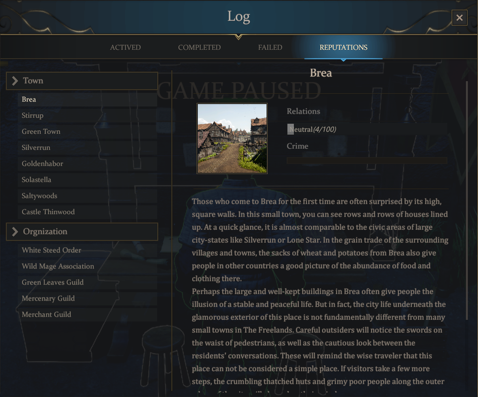 6). Naturally with quest completion, would come some sort of reputation/relation menu. Now I know you can create this already with float/int variables, but displaying it in a more "polished" way would be nice. What I mean by that is displaying it as a "bar". Being able to create a bar that would increase and decrease based on the value of a float/int variable, maybe being able to define min and max. Currently I think the only way you could do it is by hacking on through a status value right? But even then wouldn't that be tied to a combatant? So, after all, a pretty janky hack.