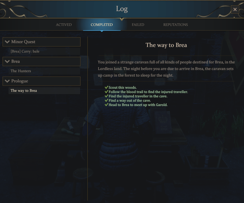 At the top are tabs that display activated/completed/failed etc. Being able to set up a log like this would be great. Defining menu tabs within existing menuscreens that function as buttons.